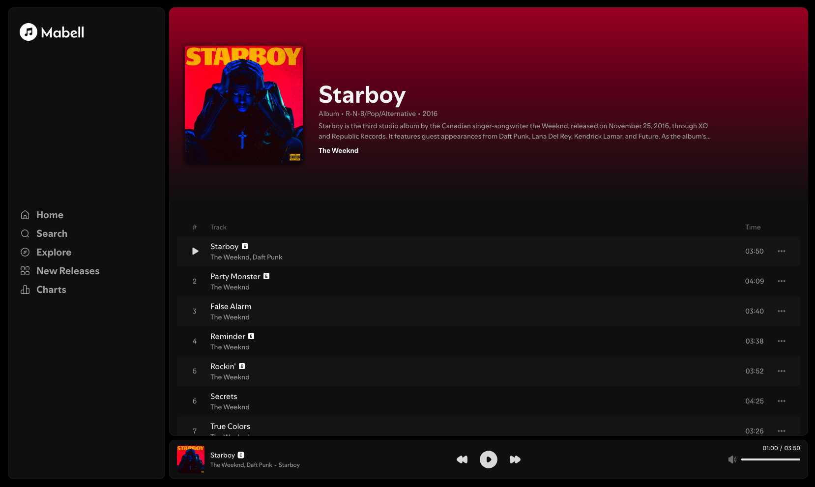 - Client App — A user-facing web app where users can explore and listen to music, create playlists, manage their profiles, and more.